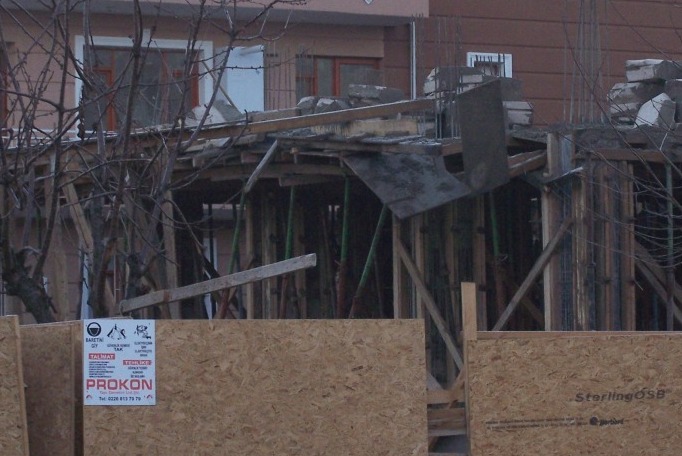 Yapı denetim şartlarına uygun şekilde yapılan inşaatın 2 kat betonu atıldığı sırada kalıpları tutan 10x10 luk keresteler ağırlığı kaldıramayınca inşaatın ikinci katının kapalı balkon çıkmaları çöktü.