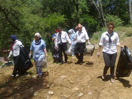 Çam fidanları dikiminden sonra Tarihi Armutlu kaplıcaları etrafındaki yolların ve piknik yerlerinin çöpleri toplandı.