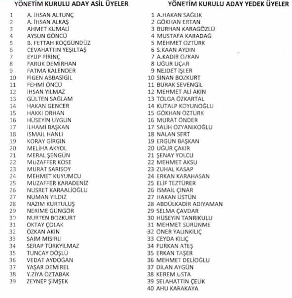 Sürpriz bir çok ismin yer bulduğu listede ağırlıklı olarak işadamların isimleri dikkat çekti. Nusret Karaalioğlu, Nazım Kurtuluş, Fehmi Öncü, Vedat Aydoğan, İlhami Başkan, Şenay Yolcu gibi tanınmış isimlerde listeye girerek Mustafa Pehlivan’ın yanında yer aldı.
